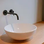 Il bagno comprende anche una cabina doccia e una lavatrice.